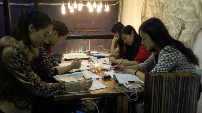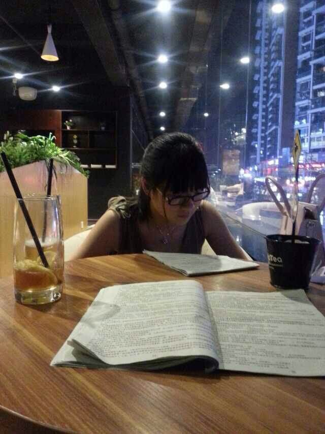 圖為:下班后老師在清吧溫習(xí)的場景。