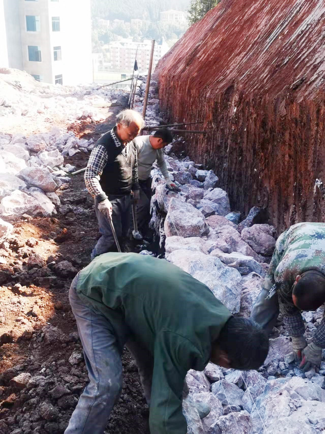 ? 工人們正在緊張有序砌筑擋土墻 ?