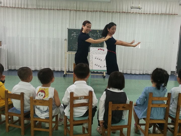 四月是幼兒園的教研月,跟隨集團(tuán)幼教中心的教研步伐,遠(yuǎn)恒佳花園幼兒園在4月份開展了音樂欣賞系列教研活動(dòng)。從最初的理論知識(shí)學(xué)習(xí)——課例設(shè)計(jì)研討——課例觀摩教研——推薦優(yōu)秀課例參加集團(tuán)選課,音樂組的老師們?cè)诓粩嗟貙?shí)踐學(xué)習(xí)過程中,對(duì)于音樂欣賞活動(dòng)的開展流程、組織策略有了一定的了解。在活動(dòng)設(shè)計(jì)方面,新教師主要以模仿課例為主,老教師以創(chuàng)新或原創(chuàng)課例為主。